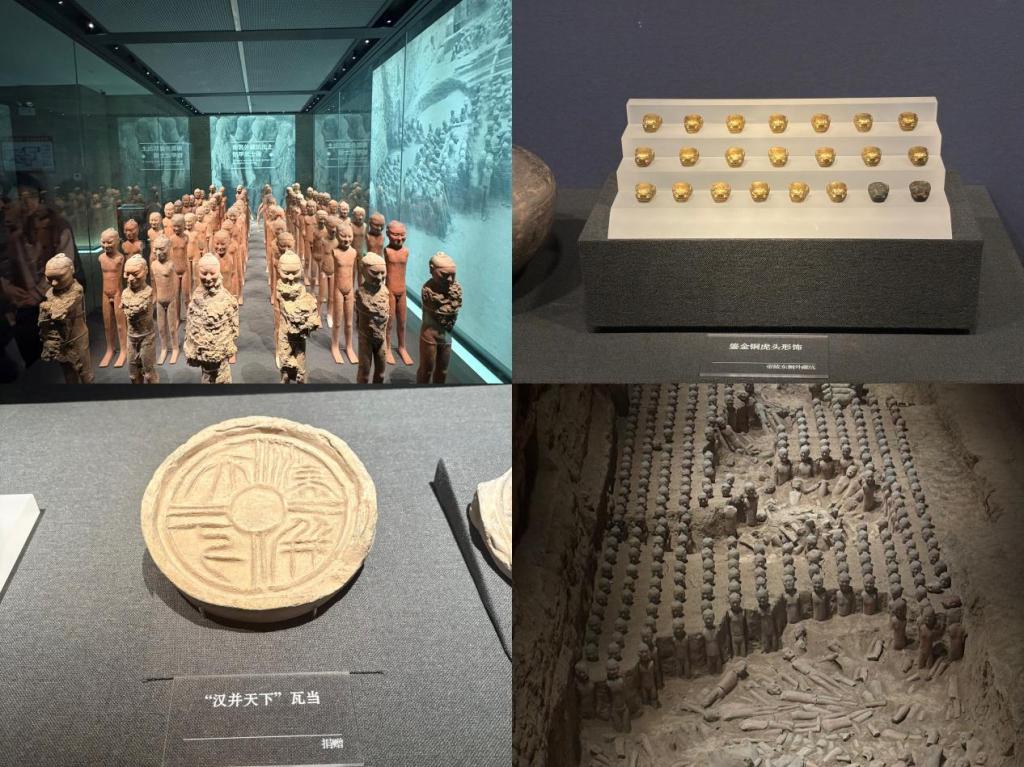 毕业实习第一站,参观汉阳陵考古陈列馆。汉阳陵考古陈列馆是中国首座实现现代科技与古代文明结合的沉浸式博物馆,馆内集中展示汉阳陵考古发掘出土的文物精品近2000件,包括武士俑群,塑衣石拱手跽坐女俑及2100年前的茶叶标本等特色展品。